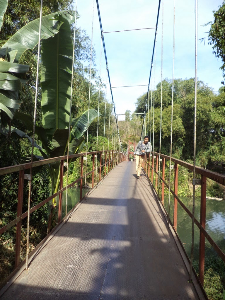 terdapat jembatan gantung. Jembatan ini yang dibuat swadaya oleh masyrakat